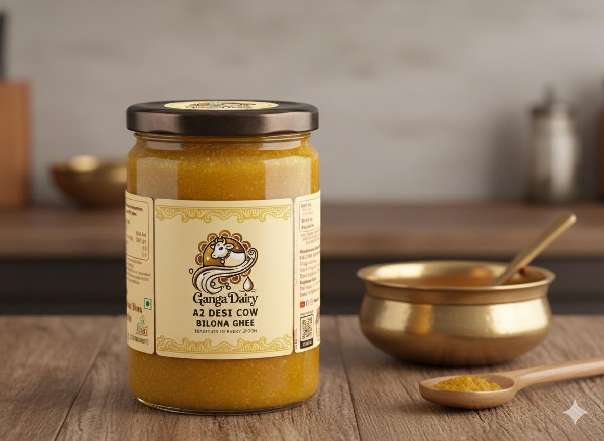 A2 cow ghee is a clarified butter made from the milk of native Indian cows that contain only the A2 beta-casein protein, unlike regular ghee that may contain both A1 and A2 proteins. It is traditionally prepared using the Bilona method, which involves slow-cooking butter churned from fermented A2 milk to preserve its nutrient-rich, easy-to-digest, and easily digestible properties. This type of ghee is considered highly beneficial for digestion, immunity, and overall health, rich in vitamins, antioxidants, and healthy fats.